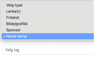 - Et nytt felt “Velg lag” vil så dukke opp, og her kan du bla i gjennom klubben sine lag i nedtrekksmenyen og velge det laget du ønsker en modul for. Så er det bare å velge en bakgrunnsfarge (bestemmer den øverste fargen i modulen) også lagre.
