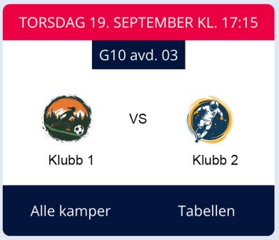 Ved å abonnere på Fotballdata gjennom Klubbnettside, kan klubben f.eks bruke moduler for å presentere informasjon om kommende kamper for valgt lag. Moduler er bokser som vises til høyre på Klubbnettside, og Neste Kamp-modulen gir klubben rask og oversiktlig informasjon om neste kamp for klubben/laget.