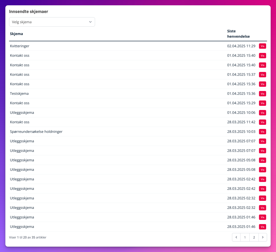 Innsendte skjemaer