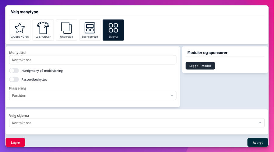 - Velg menytype Skjema