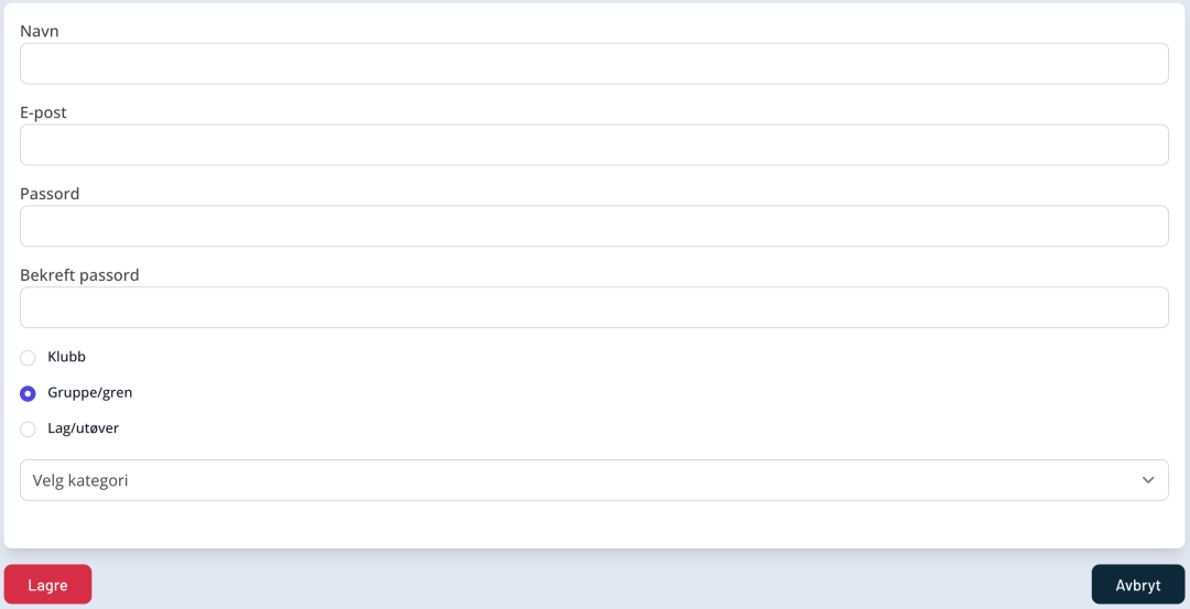 - Klubb - Gir full administratortilgang på siden og kan opprette brukere til andre