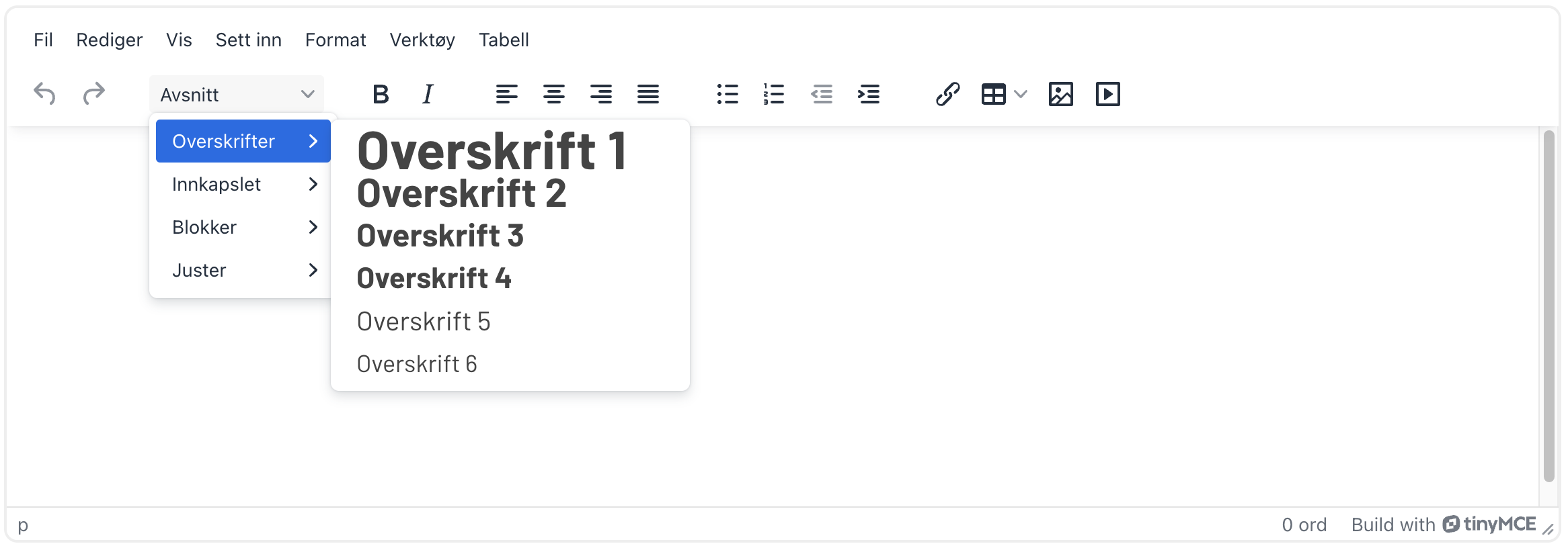 Det finnes mye forskning på hvordan vi mennesker leser tekst. Bruk overskrifter tilknyttet avsnitt eller tema du skriver om hjelper leseren å raskere finne den informasjonen de leter etter.